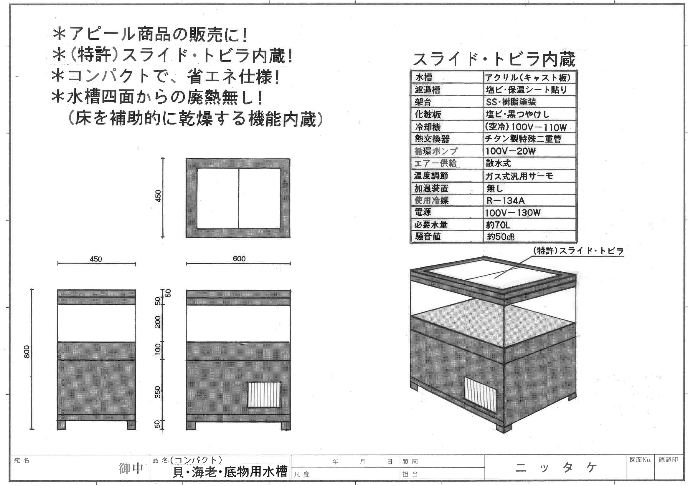 (新型)ニッタケシステム内蔵 活魚水槽〇水温調節・濾過・エアー供給・水質浄化等 活魚水槽に必要な